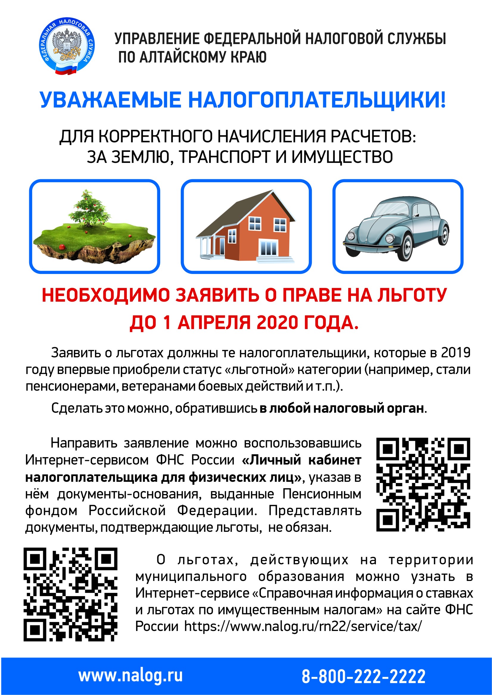 Физическим лицам необходимо заявить о праве на льготу до 01.04.2020